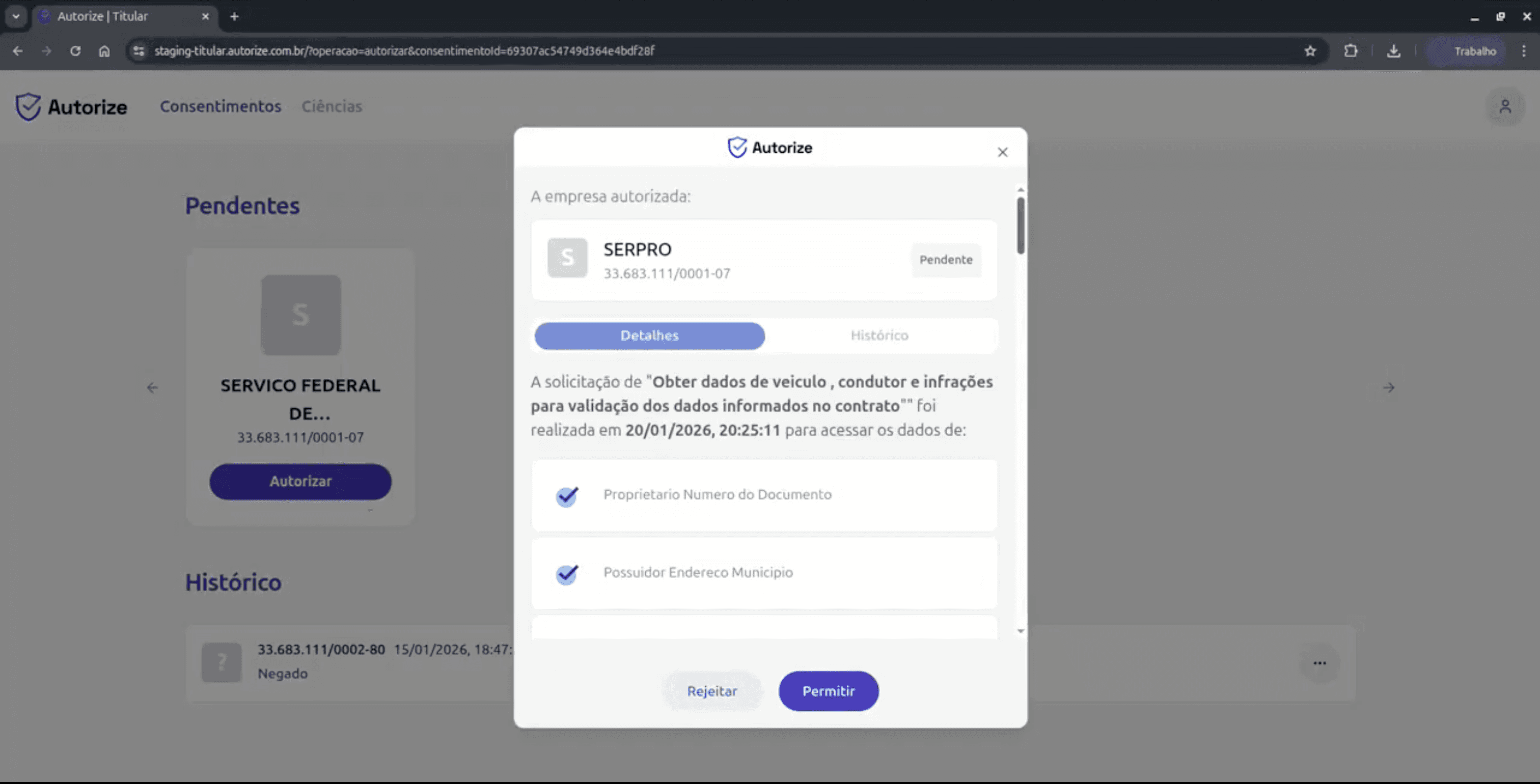 No Autorize, os titulares podem visualizar e gerenciar todas as permissões já concedidas a seus dados pessoais.