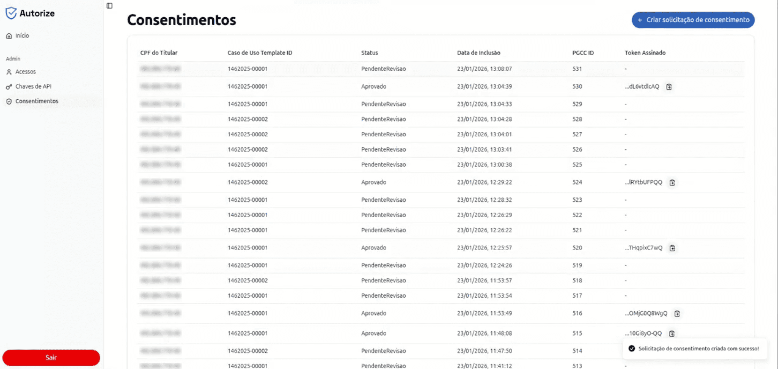 Com o Autorize, cada consulta é registrada, auditável e vinculada ao consentimento do usuário, assegurando conformidade jurídica para sua operação.