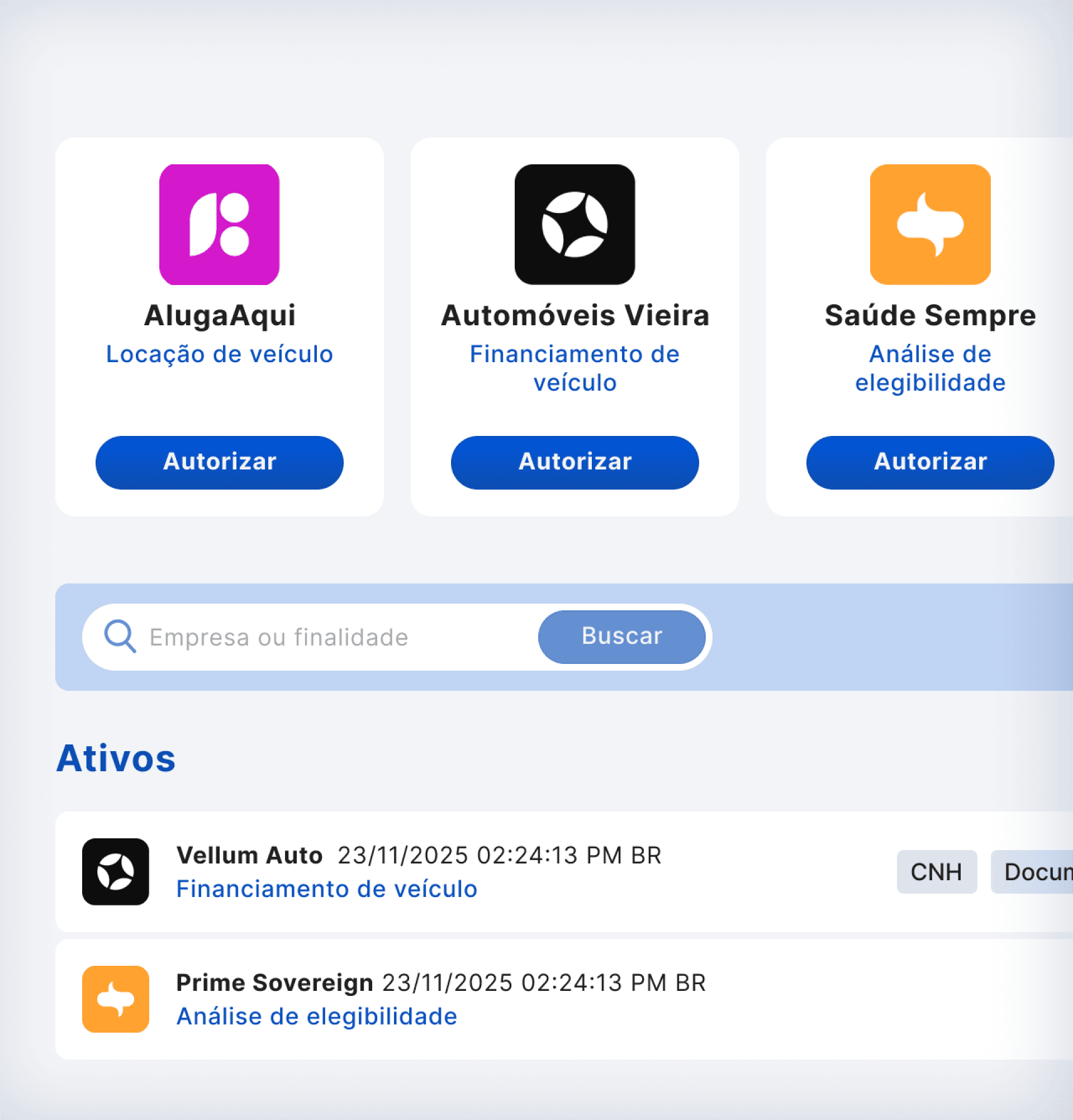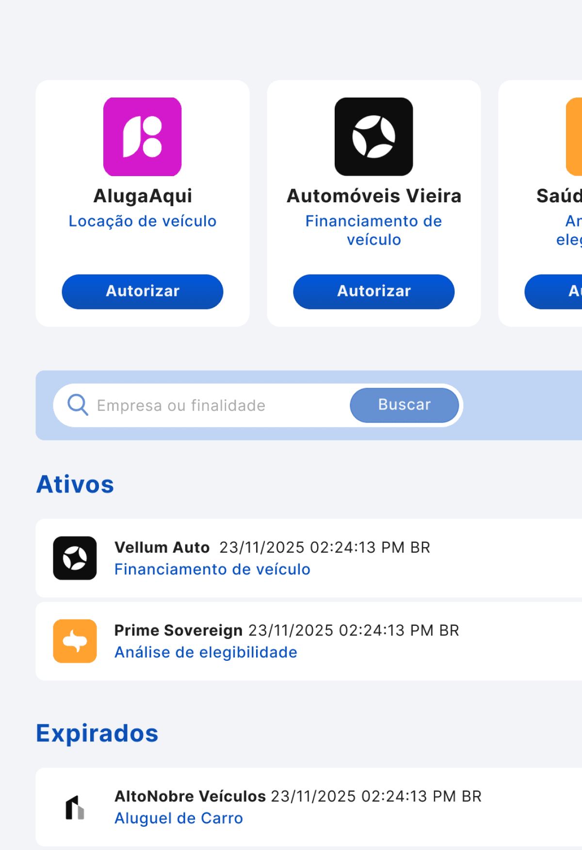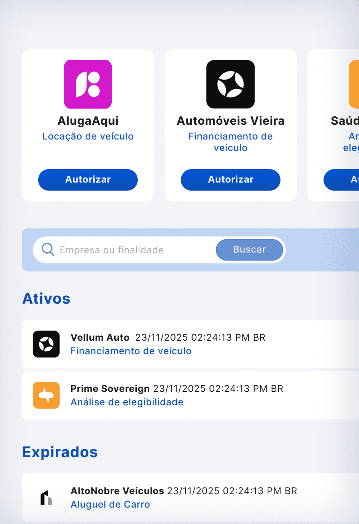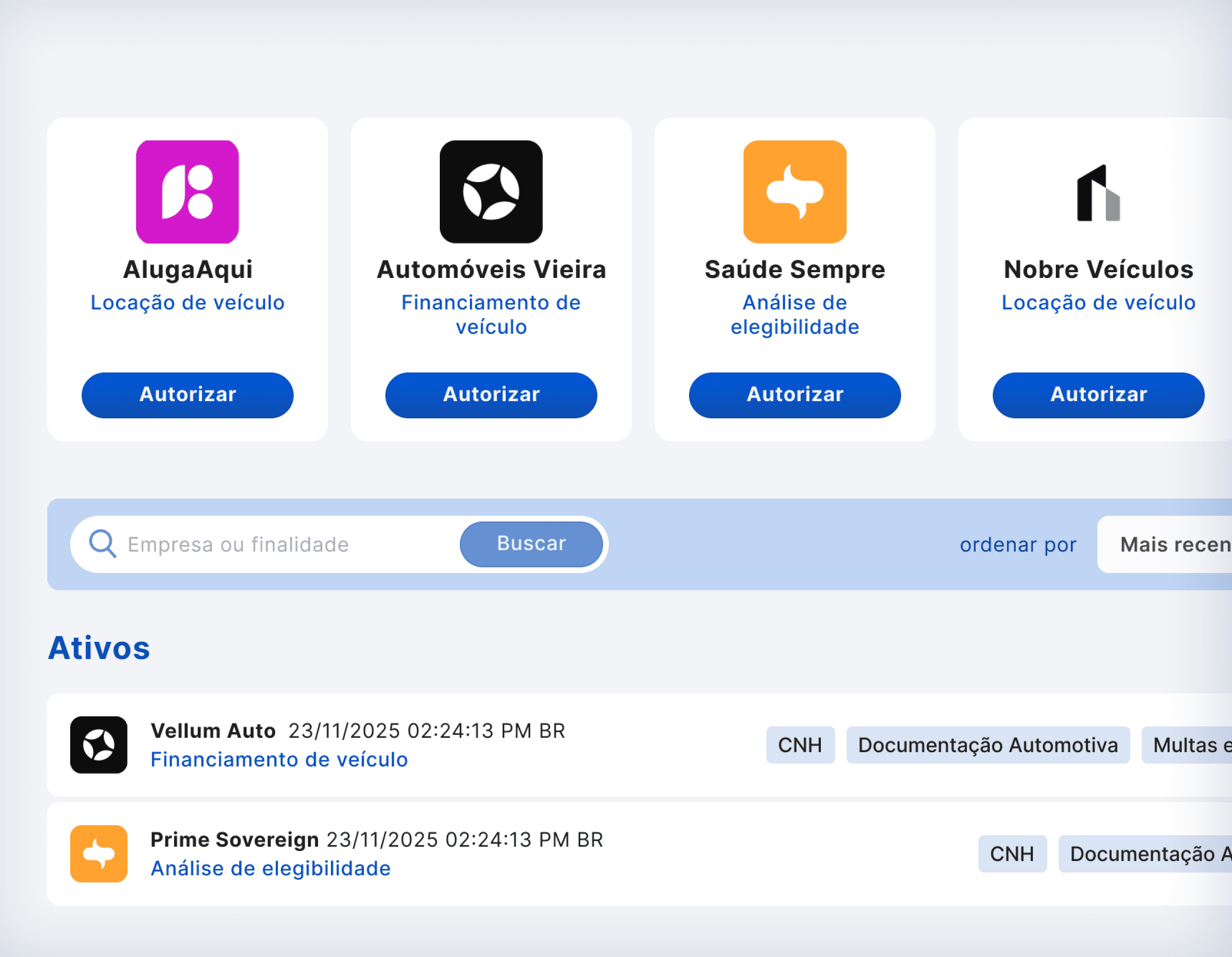 Com o Autorize, cada consulta é registrada, auditável e vinculada ao consentimento do usuário, assegurando conformidade jurídica para sua operação.